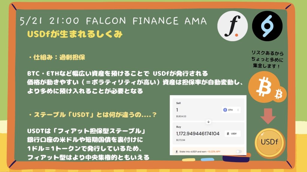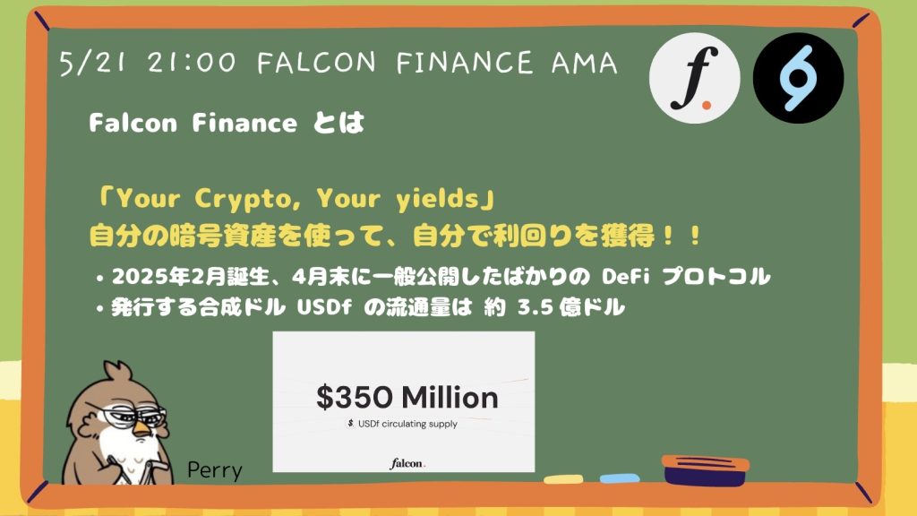 今回のAMAでは、ステーブルコイン「USDf」を中心に急成長を遂げているFalcon Financeの仕組みや、エコシステムの全体像、そして今後の展望について詳しく語られました。