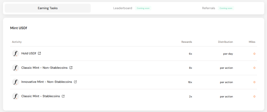 USDfやsUSDfの発行・保有・ステーキング、Boosted Yield NFTのロックなど、ユーザーのプロトコルへの貢献行動に応じてポイントが累積されていきます。将来的には、流動性提供やレンディング、さらにはイールドトークン化プラットフォーム(利回り権利をトークンにする仕組み)などへの参加も、ポイント加算対象となる予定です。