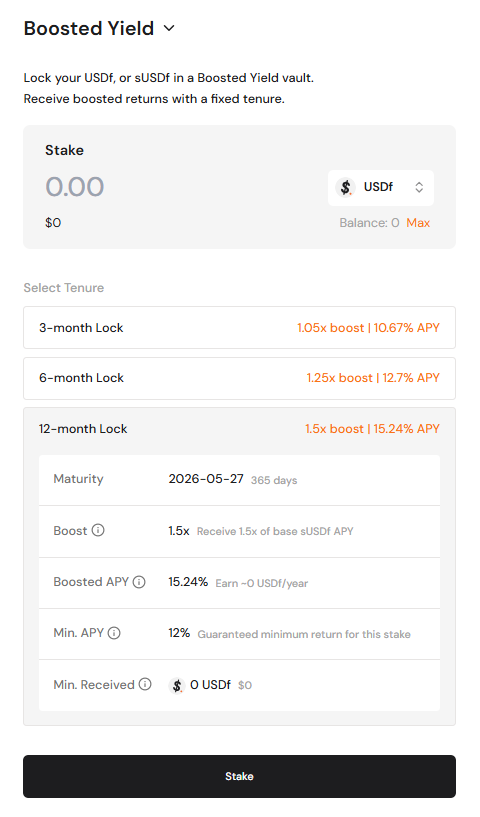 通常のsUSDfはいつでも引き出し可能であるのに対し、Boosted Yieldは柔軟性を犠牲にして利回りを最大化する選択肢と言えます。固定期間ロックの代償として、高いAPYが提供されるため、長期保有を前提とするユーザーには魅力的なオプションです。