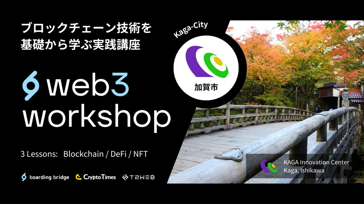 日本最大級のWeb3コミュニティ「boarding bridge」主催で、加賀市にてブロックチェーン技術を基礎から学ぶ実践講座が行われます。
