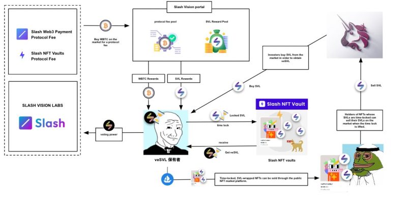 ホワイトペーパーにもありますが、$SVLトークンを買った場合にNFTをタイムロック(4年間MAX)するSlash Vaultを6月中にローンチ予定です。Vaultにはveエコシステムを採用し、veSVL(移動できないトークン)によるガバナンスが有効となります。vsSVLの保有者には、Slashの手数料からwBTCでリワードを分配する予定です。Slashの利用者が少なく手数料額が低い場合でも、SVLのアロケーションの10%を配布する通常のステーキングが採用される予定です。