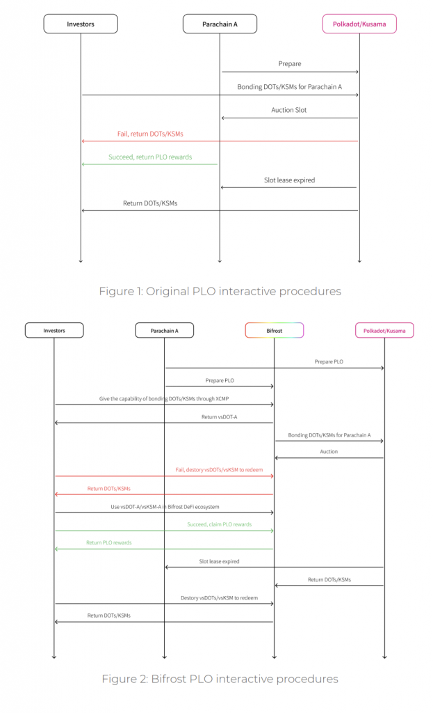 ここでPLO Liquidityとは何かを紹介しておきます。PLO Liquidity プロトコルでは、スロットオークション中のDOTとKSMの流動性問題を解決するために、他のParachainのためにvsDOTとvsKSM(バウチャースロットDOT/KSM)のデリバティブを提供します。