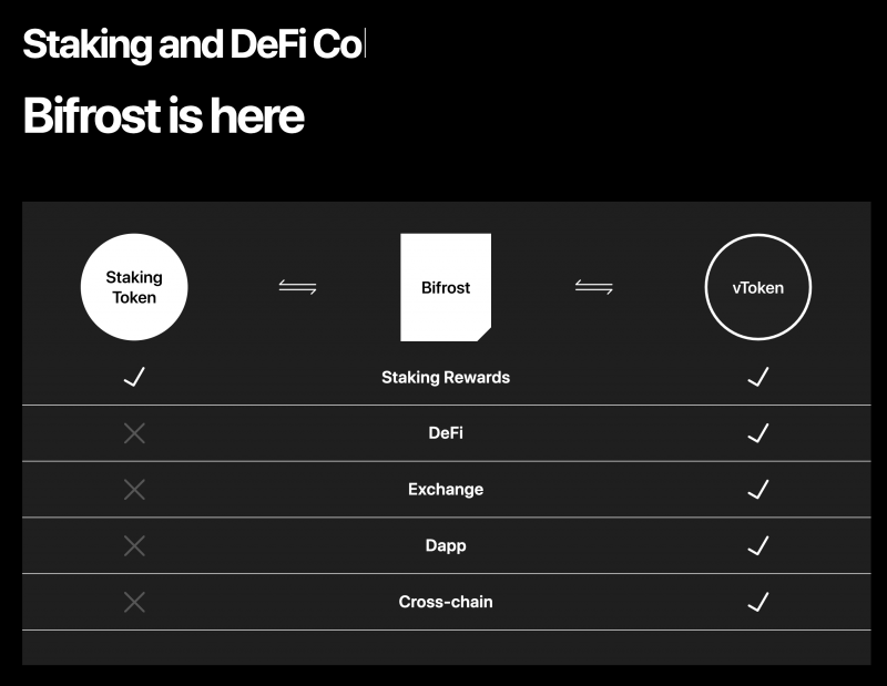 Bifrostのプラットフォーム上でStakingとPLOを実施することで、代替トークンとなるvTokenを得ることができます。