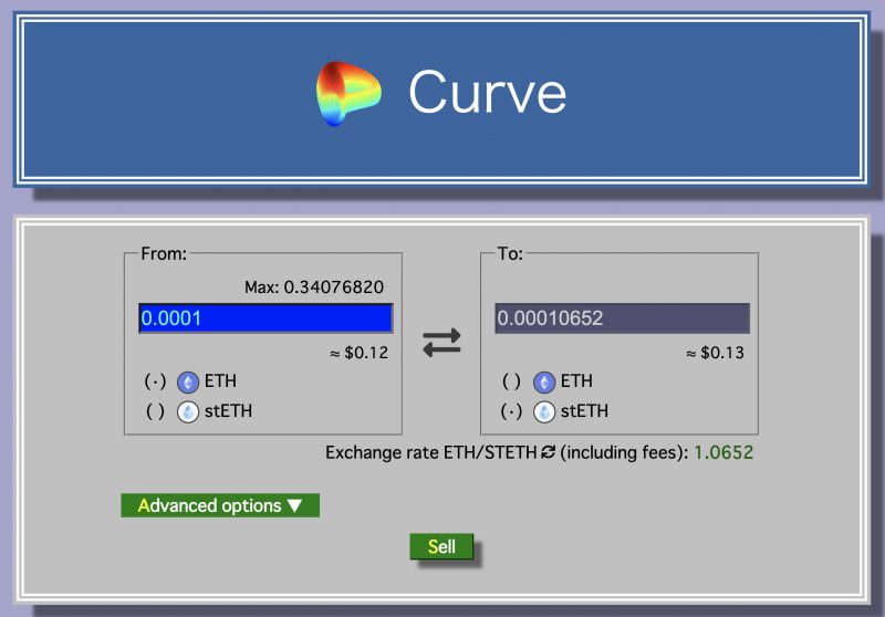 Curveでの売買画面 | 画像引用元:https://curve.fi/steth