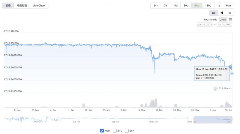 stETH/ETHのチャート(過去90日間):画像引用元:Coingecko