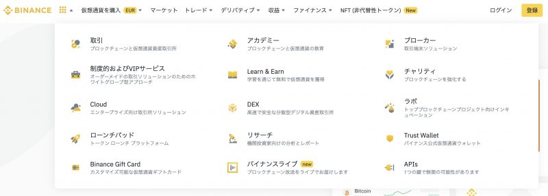Binanceが提供するサービスの一部 | 画像引用元:Binance