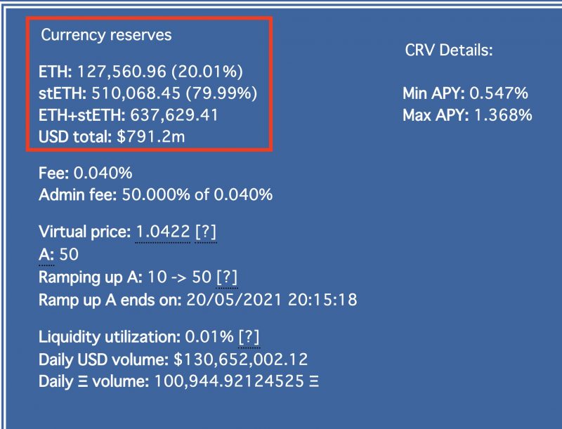 Curveでのプール状況 | 画像引用元:https://curve.fi/steth/deposit