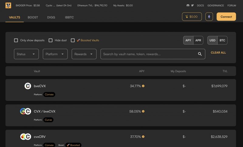 BadgerDAOのアプリケーション | 画像引用元:BadgerDAO