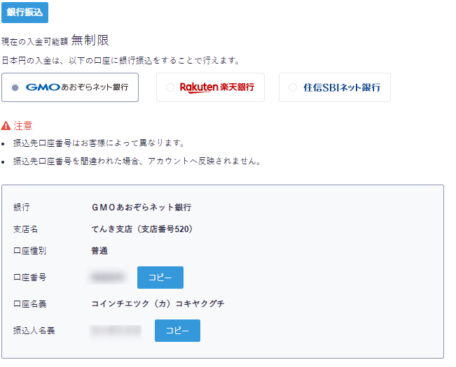 まずはCoincheck(コインチェック)に日本円を入金する方法から確認していきます。