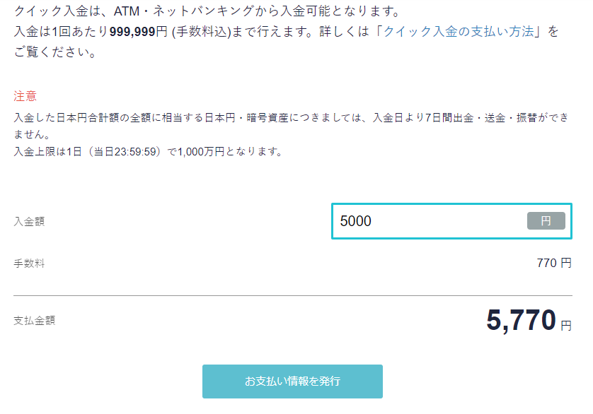 なお、コンビニ入金では上限が決められていて、1回あたり30万円までしか入金できません。