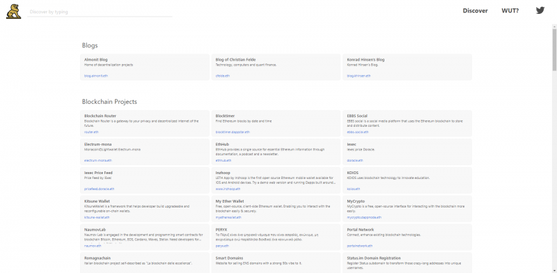 この検索エンジンは、IPFSと呼ばれるファイルシステム、.ethドメインを取得可能なENS(Ethereum Name Service)を利用する通称”Dwebサイト”がインデックスされています。
