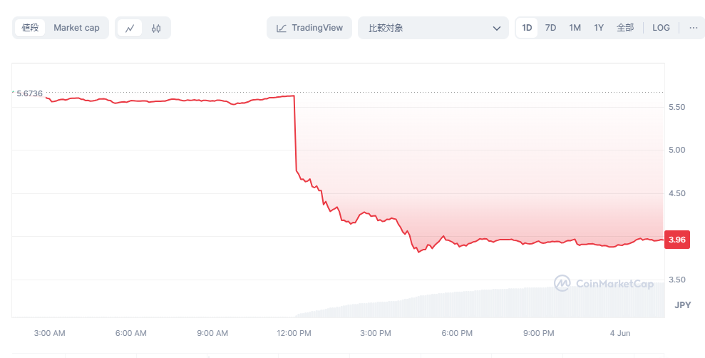 今回の発表は各銘柄の価格にも影響を与えており、ネム($XEM)の価格も1日で30%ほど下落しています。