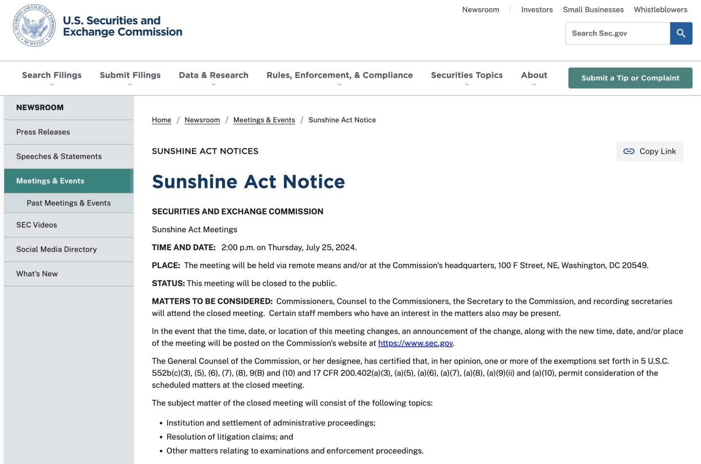 一部の暗号通貨トレーダーは、先週予定されていたSECの非公開会議で和解発表が行われる可能性があると推測しています。