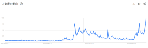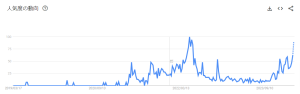 また、Googleのトレンド検索におけるSolanaの人気も上がっており、2021年のバブル以降と同水準に到達していることからも投資家や仮想通貨に興味のあるユーザーなど多くの注目を浴びていることがわかります。