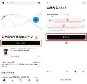 ダウンロードしたアプリを開き、先ほどアカウント作成時に入力した情報を使用してログインしましょう。