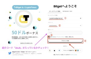 ①Bitgetの口座を専用リンクから開設する(スマホでも同様のページが表示されます)