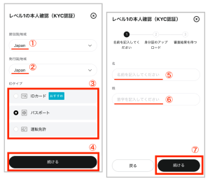 そのまま進むと本人確認プロセスが開始されるので、居住国や身分証のタイプなどを選択し、案内の通りに続ければ本人確認は完了となります。