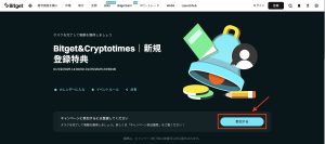 Bitgetにログインした状態でイベントページにアクセスし「参加する」をクリックしましょう。