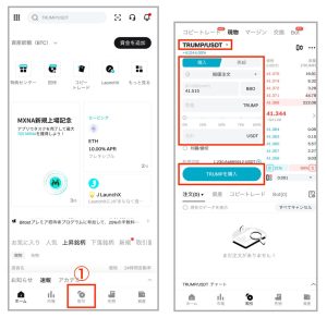 画面下のタブの「取引」から取引画面に移行できます。(Webの場合は画面上部)