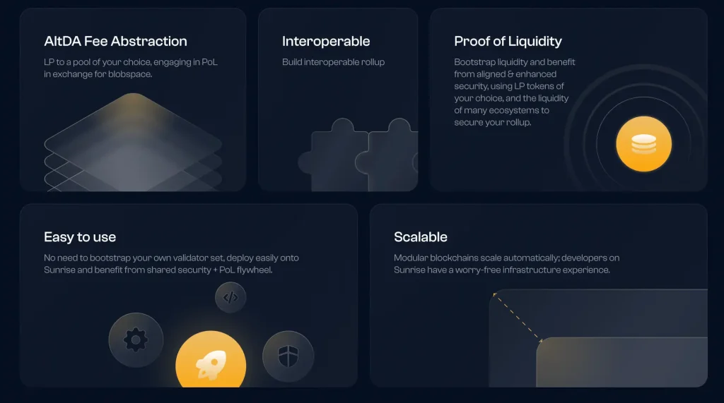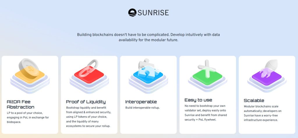 Sunriseは、Proof of LiquidityとFee Abstractionに特化したデータ可用性 (DA) レイヤーのプロジェクトです。