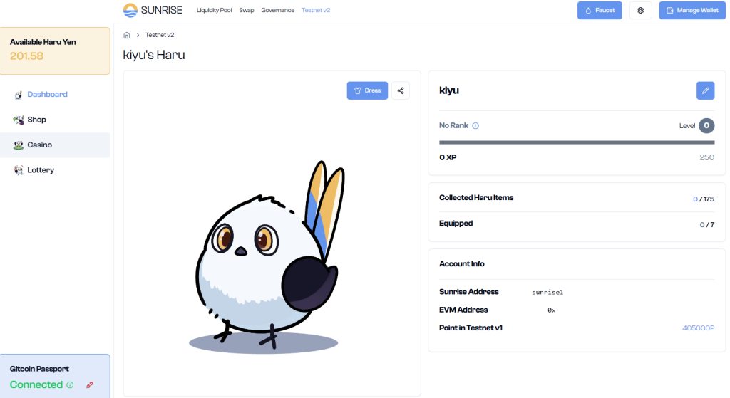 今回のSunrise Testnet v2では、ガバナンス関連の新機能やゲーム性が追加され、カスタマイズ可能なSunriseマスコットのHARUも登場しています。
