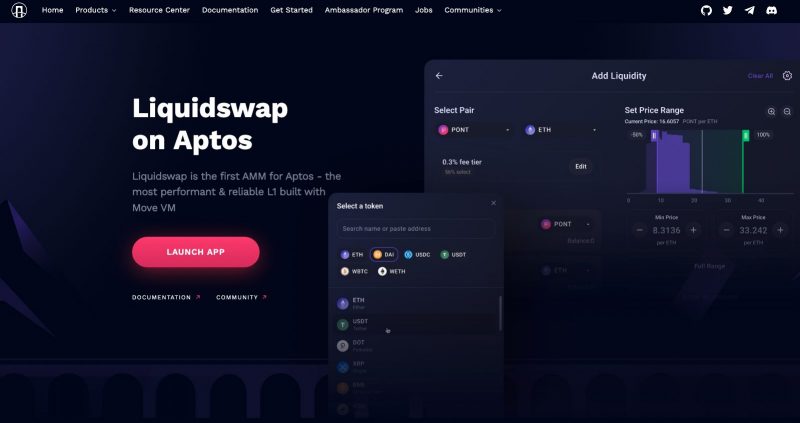 Liquidswapは、Aptosに構築されたはじめてのAMMのDEXです。(Pontem Network曰く)